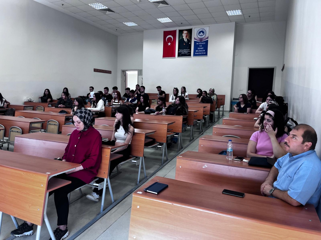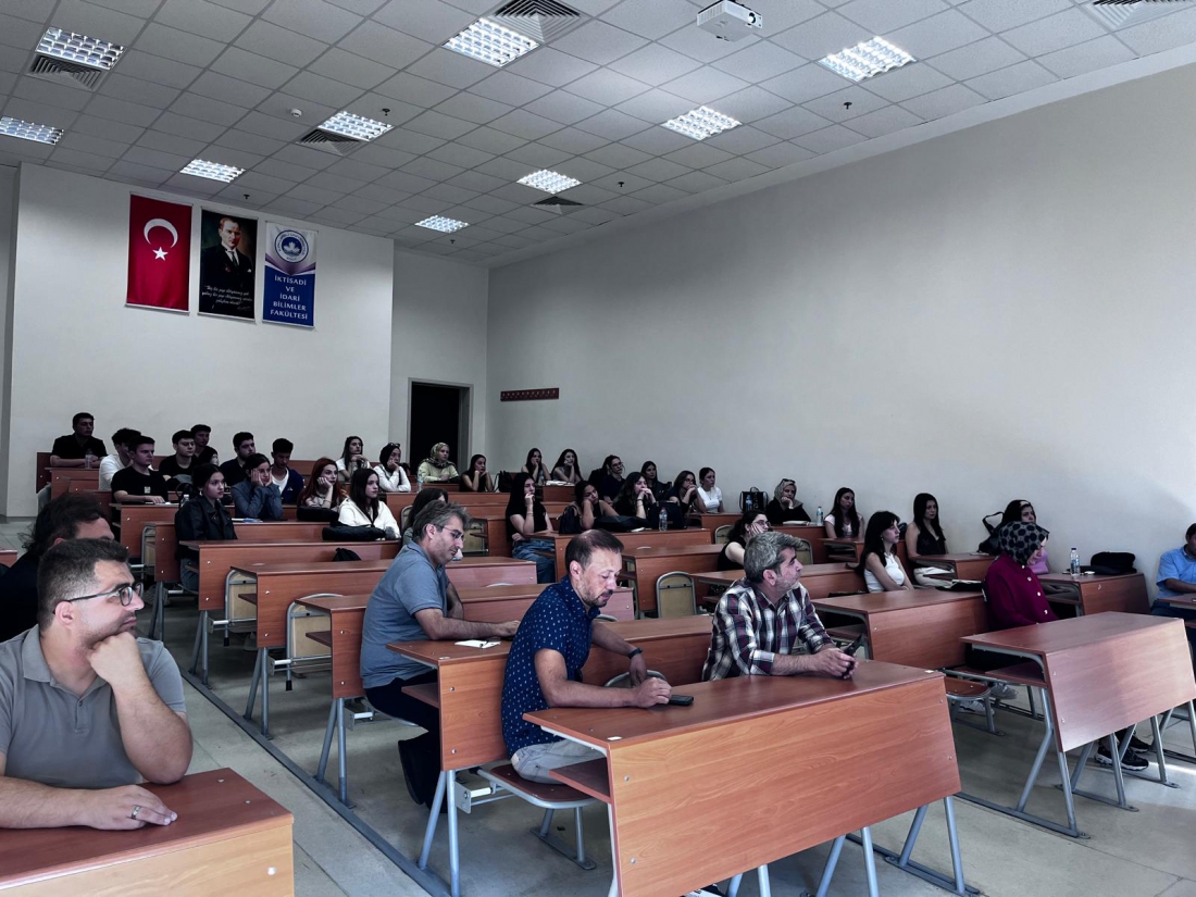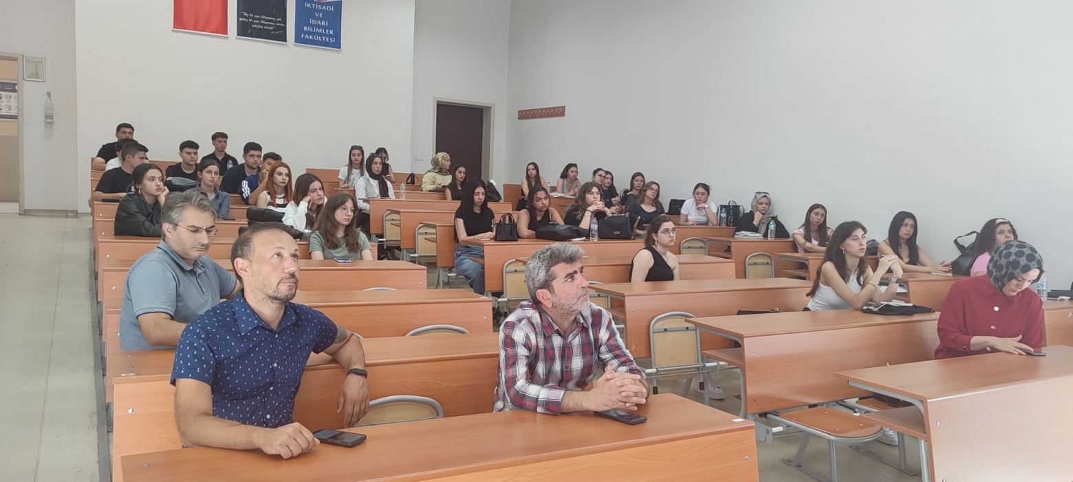 Bölüm Başkanı Prof. Dr. Ramazan TİYEK içten ve samimi sunumuyla öğrencileri karşıladı. Sunumda üniversite, fakülte ve bölüm hakkında detaylı bilgiler paylaşılırken; öğrencilerin eğitim-öğretim hayatını daha verimli geçirmeleri için rehberlik edici tavsiyelere de yer verildi.